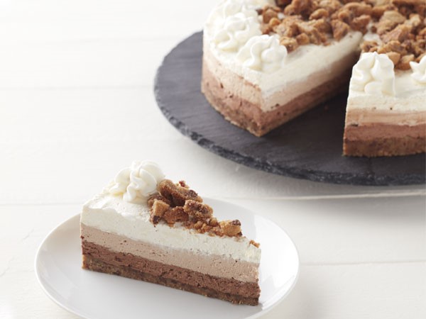 Think no-bake desserts aren't quite as decadent? Think again. Our triple chocolate cheesecake is packed with white, bittersweet, and milk chocolate and are layered on a crust made of crushed chocolate chip cookies.