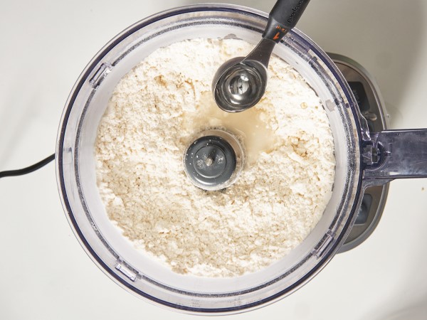 Continue adding water and pulsing until the flour mixture is moistened and holds together.