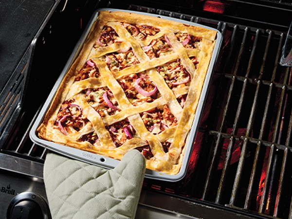 Have you heard of a pan griller? It's a slab pie made on your grill! We've got sweet and savory options for you to try out this summer. Get our easy step-by-step instructions below, then try your favorite recipe from Hy-Vee Seasons Magazine! Get the full recipes for BBQ Blue Cheese and Chicken Pan Grillers, S'mores Pan Grillers, and Spinach and Ricotta Pan Grillers right here!
