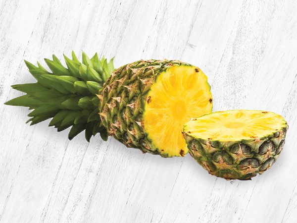 Choose: Fruit that's heavy for its size with fresh green leaves and strong sweet smell; should be easy to pluck one leaf from crown