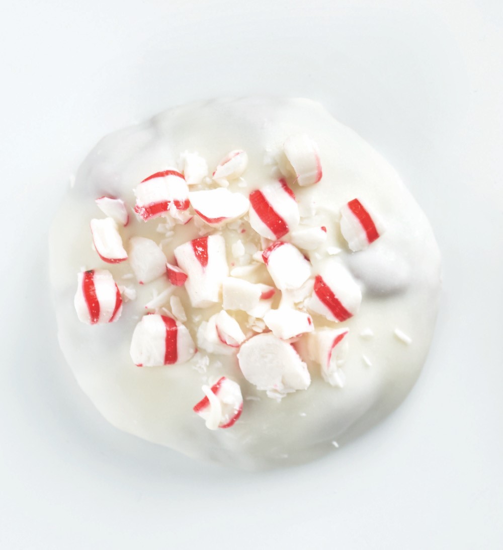 4. Sprinkle with crushed Hy-Vee Classic peppermint twist candy. Makes 16.