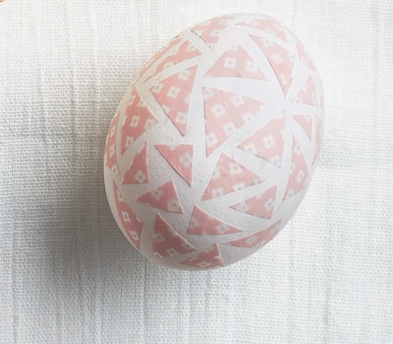 Cut colorful washi tape into geometric shapes and stick them on the egg to create your own mosaic pattern.