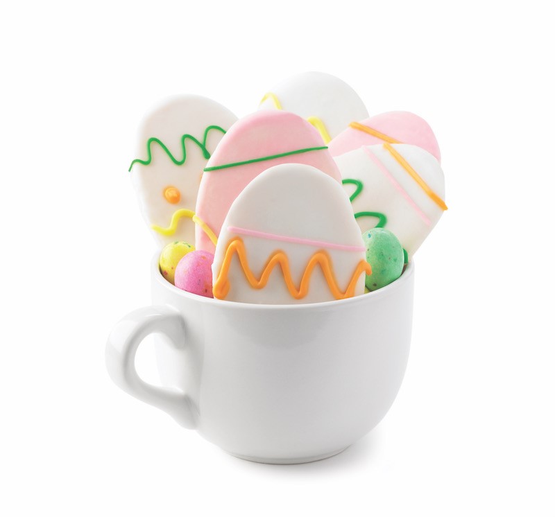 This whimsical take on cookies and tea is a clever way to decorate the Easter brunch table. It also doubles as a mini "basket" that can be filled with candy and cookies. Pro tip: The bigger the mug, the better.