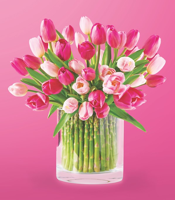 Use the same method as the Candy Vase Bouquet, only fill the space between the vases with trimmed asparagus spears.