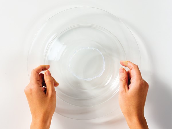 Attach Plates: Hot-glue a clear glass Hy-Vee salad plate onto the center of a larger glass dinner plate.