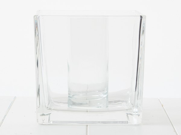 Fill small glass with water; set inside the large glass centerpiece vase.
