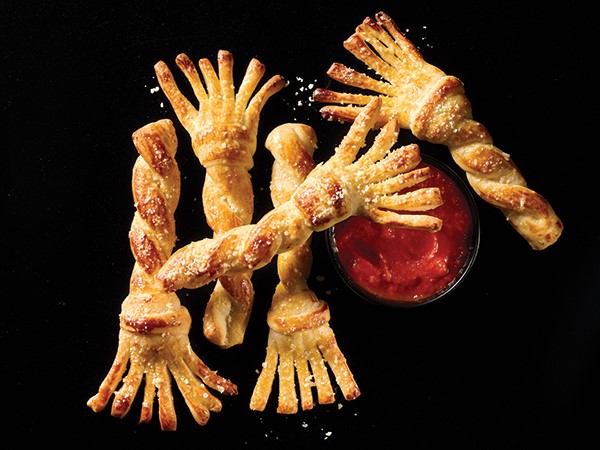 Kick off your night of fright with Witch Broom Breadsticks! They're wickedly easy and make a satisfying appetizer for your Halloween feast. Plus, kids will love them! They're perfect for dipping in soup or a zesty basil pasta sauce. Follow our step-by-step instructions below to learn how to make them. Find the full recipe here.