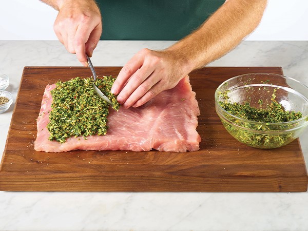 Looking for the full recipe? Check it out here: Broccolini-and-Pistachio Pesto Stuffed Pork Loin.