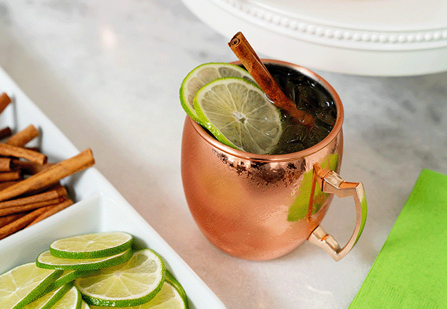 Finish with copper mugs and seasonal garnishes to go with a nonalcoholic apple cider Moscow mule.