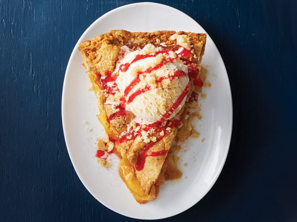 Top a slice of Hy-Vee Bakery lattice apple pie with It's Your Churn vanilla ice cream. Drizzle homemade red hots cinnamon candy sauce over top and sprinkle with crumbled Hy-Vee Bakery snickerdoodle cookies.
