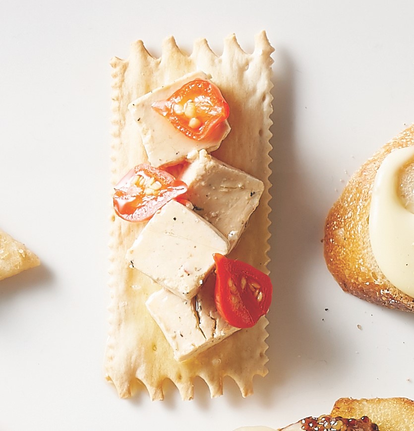 Point Reyes Toma on Garlic-Her Crackers with Nduja (Spreadable Spicy Salami)