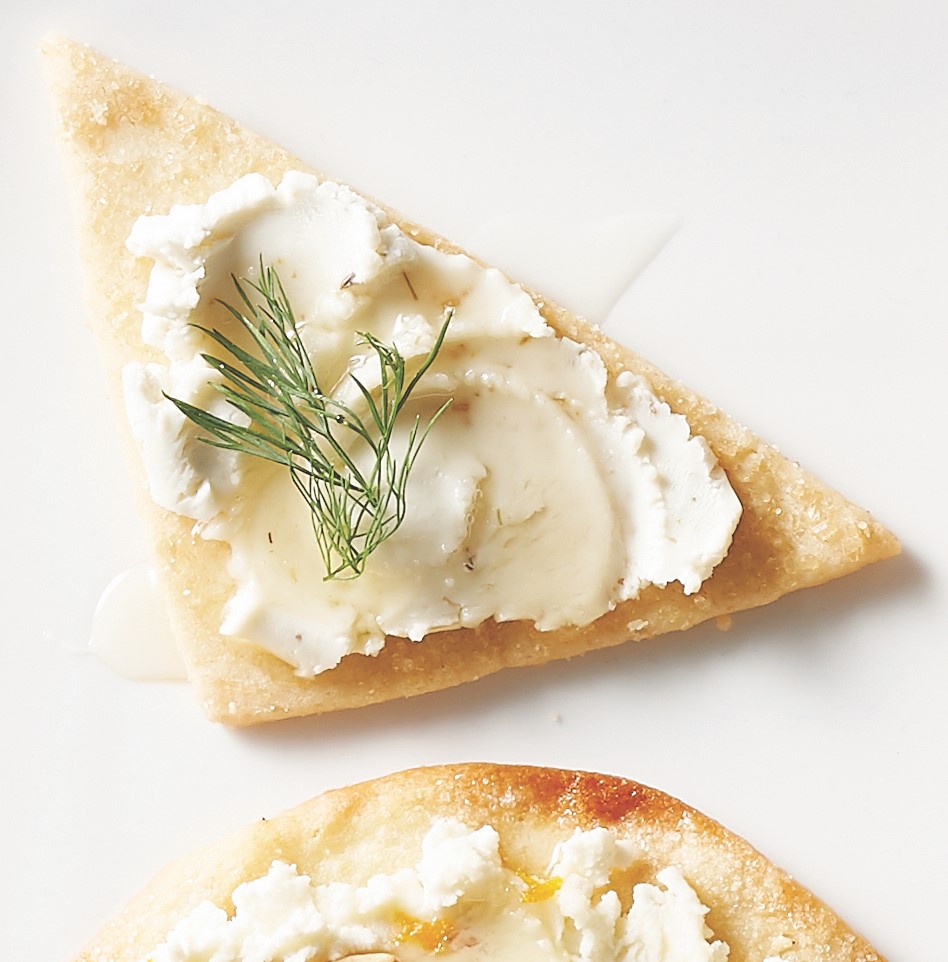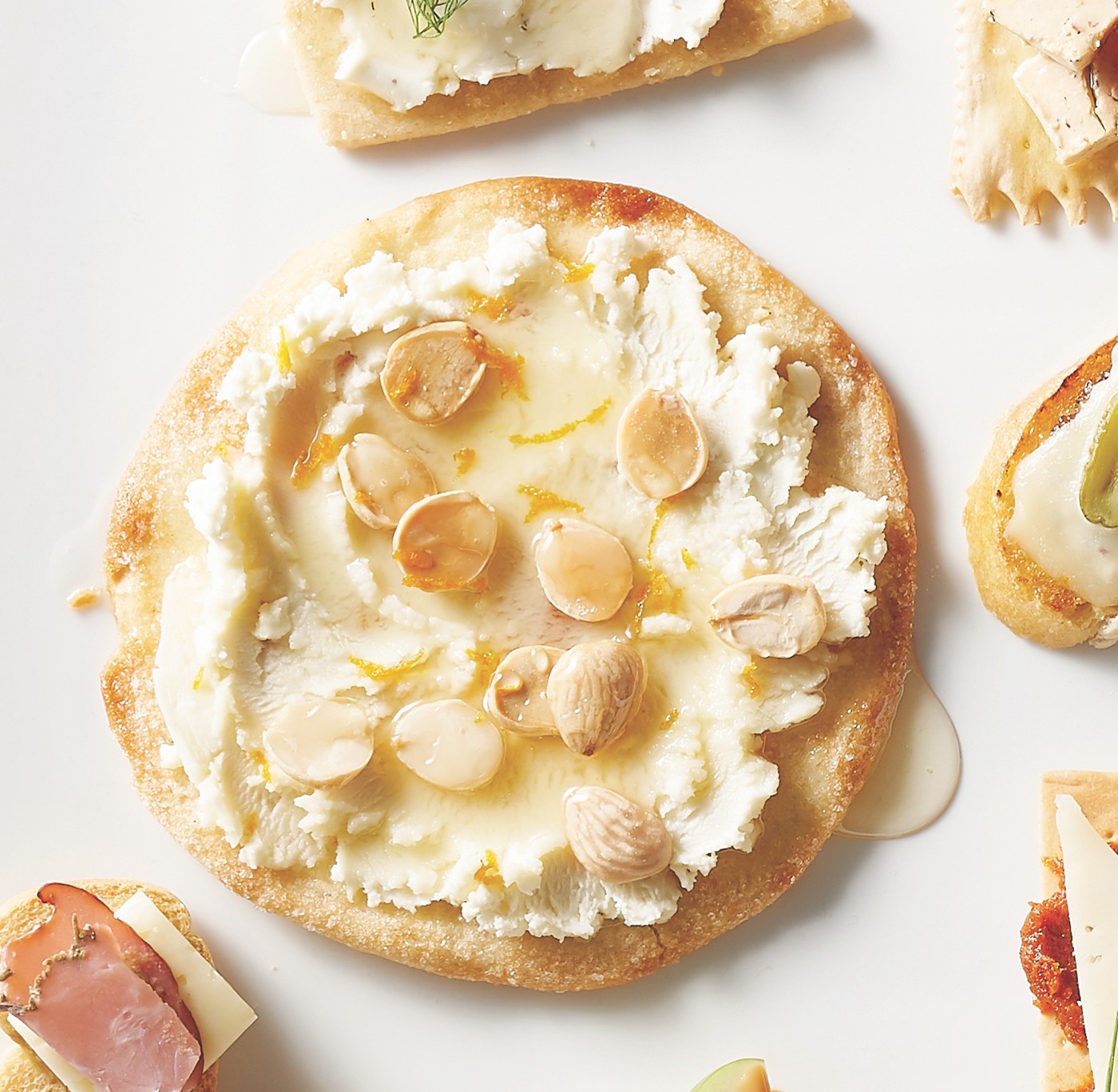 Milton Creamery Quark on Olive Oil Torta with Marcona Almonds & Honey