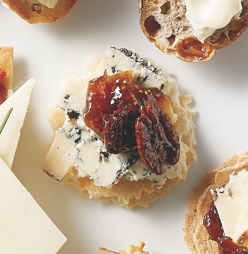 Caveman Blue on Crisps with Fig Spread & Caramelized Pecans