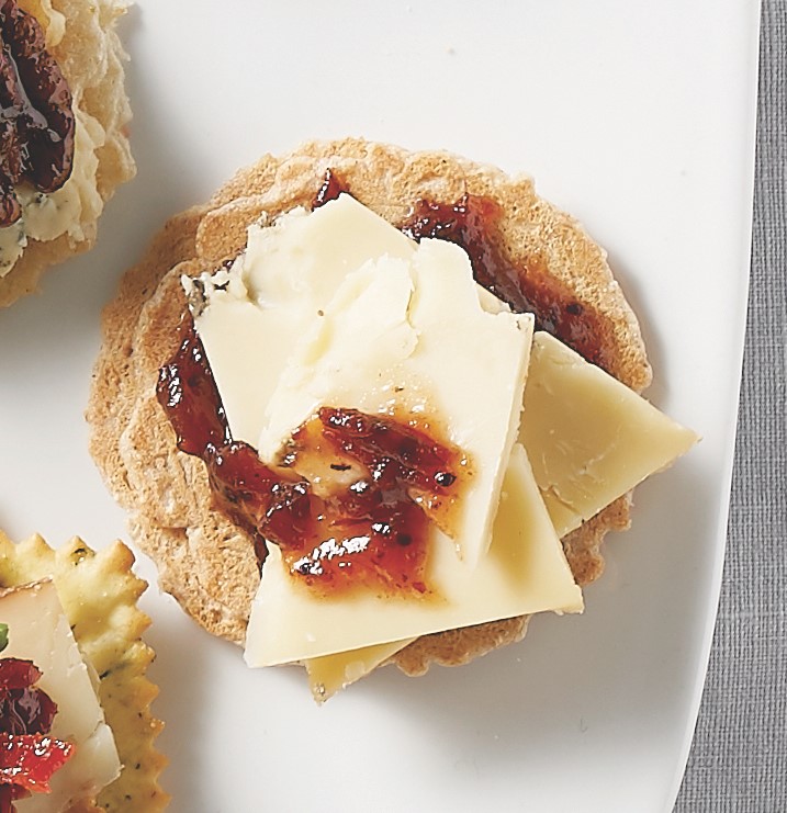 Dunbarton Blue on Poppy-Seed Crackers with Cranberry Chutney