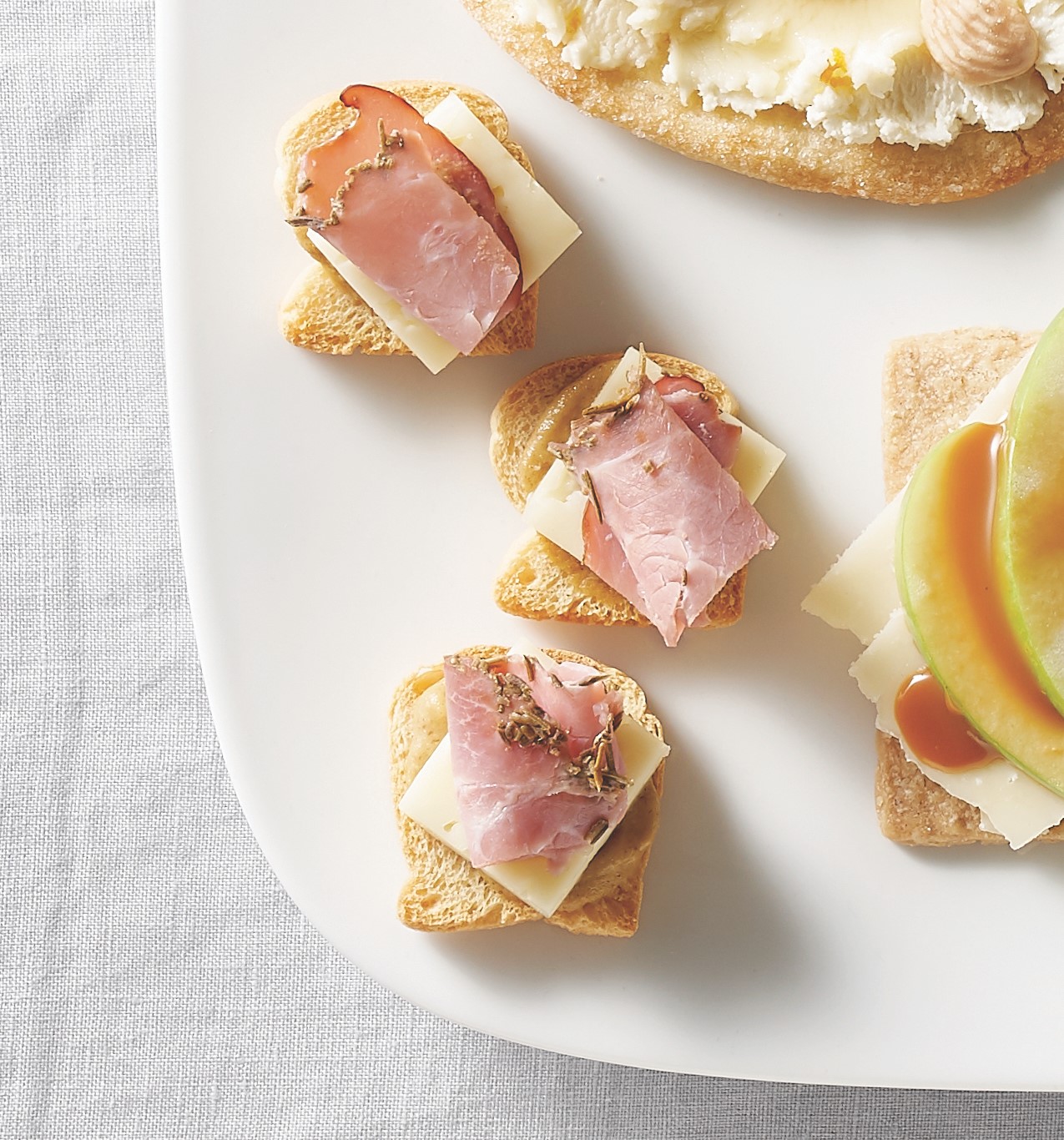 Widmer's Brick on Mini Toasts with Ham and Pub-Style Mustard