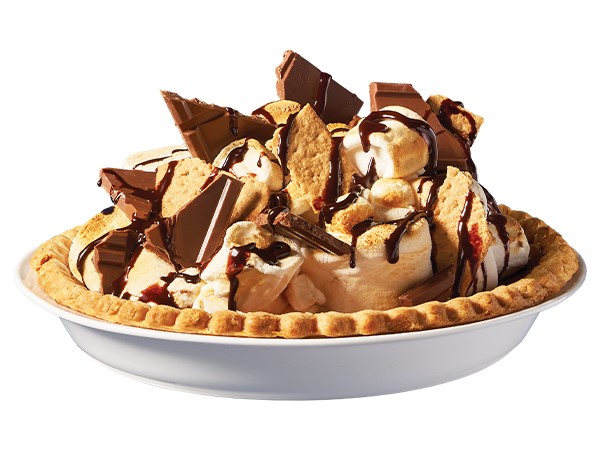 Preheat oven to 450 degrees. Place 1 (10-inch) Hy-Vee Bakery pumpkin pie on a baking sheet. Mound top of pie with Hy-Vee marshmallows of desired sizes. Bake 5 to 7 minutes or just until marshmallows are toasted but still hold their shape. Top with pieces of Zoet milk chocolate bars and Hy-Vee honey grams. Drizzle with That's Smart! chocolate sauce. Serves 12.