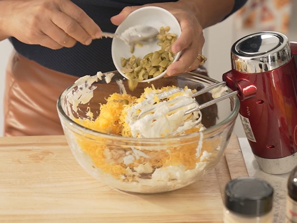 First up! Get the full recipe here. Mix cheeseball ingredients according to recipe directions.