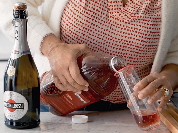 You've found it: the perfect sip for your Valentine's Day breakfast! These easy cranberry mimosas feature a beautifully-coated rim of pink sanding sugar and take only minutes to make.