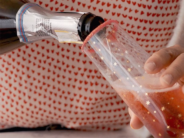Pour desired amount of champagne or sparkling wine into glass; carefully pour into center of glass to not splash rim.