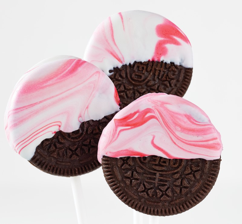 Dip your favorite sandwich cookies in melted white or dark chocolate and decorate.