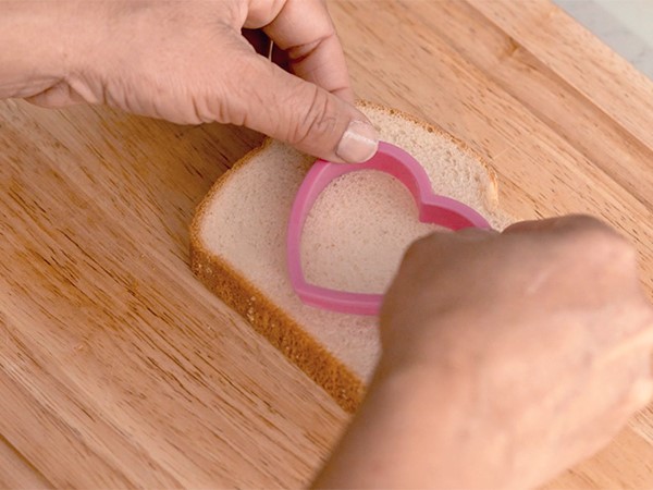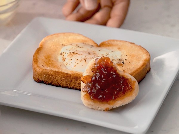 4. Remove from heat. Spread heart-shaped bread with strawberry jam before serving.
