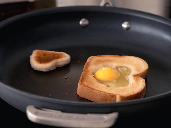 You've probably heard of bird's nest toast, but what about heart's nest toast? We used a heart-shaped cookie cutter to create this Valentine's Day-worthy spin on the well-known breakfast. Here's how.