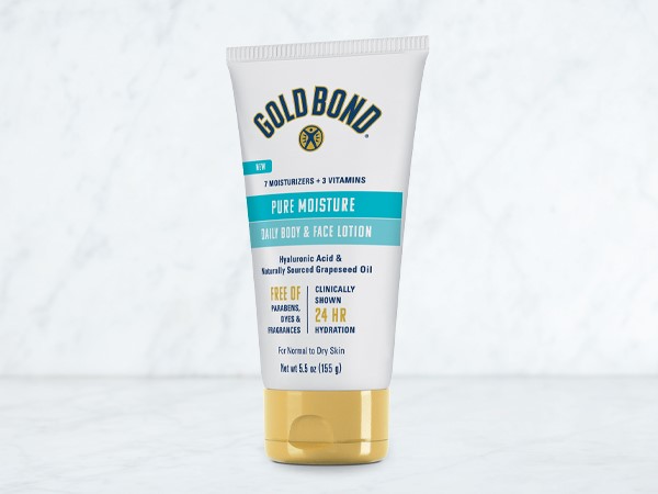 The secret to this light, yet moisturizing face and body lotion? Hyaluronic acid! It can bind over 1,000 times its weight in water, making this Gold Bond Pure Moisture Lotion a great choice.
