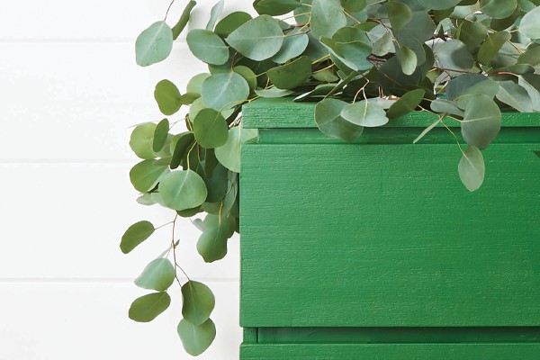 You don’t need evergreen everywhere. Switch things up with a fresh eucalyptus garland. Keep away from direct light and heat sources.