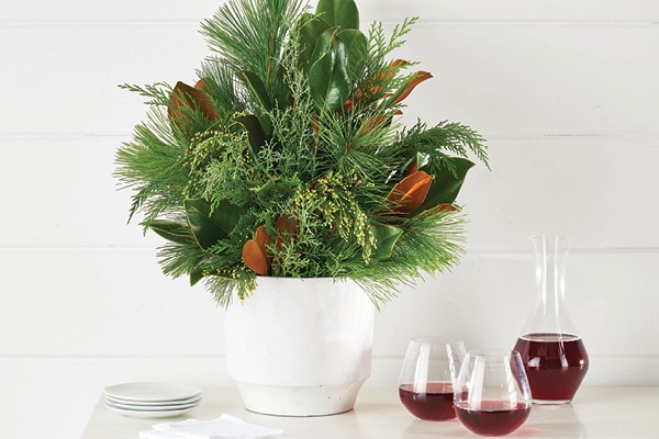 Evergreen to ever great! Take a fresh evergreen bouquet from Hy-Vee, and add leaves of magnolia or balsam for shape and color.