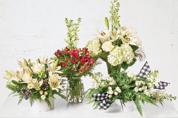 Hy-Vee Floral artists are ready to make things merry with gorgeous blooms and bouquets. Pick up one of these fabulous, fragrant arrangements this season. Winter’s Wonder combines white lilies, pine cones, and small and large white roses. Holly Jolly has red hypericum berries, alstroemeria lilies, evergreen stems, and white snapdragons. Celebrate does just that with lilies, hydrangea, roses, and snapdragons. Alpine Snowblends succulents, evergreen sprigs, white roses, and snapdragons – all accented with a gray-and-white-checked ribbon. Order your holiday bouquet today!