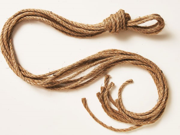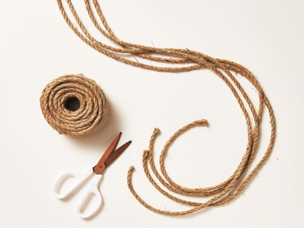 Cut four equal lengths of jute. For a 32-inch hanger, cut four lengths, each 88-inches plus the width of the pot.