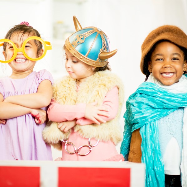 Half the fun is finding costumes and props, which can then inspire the script. Brainstorm ideas together. Follow the script loosely by ad-libbing.
