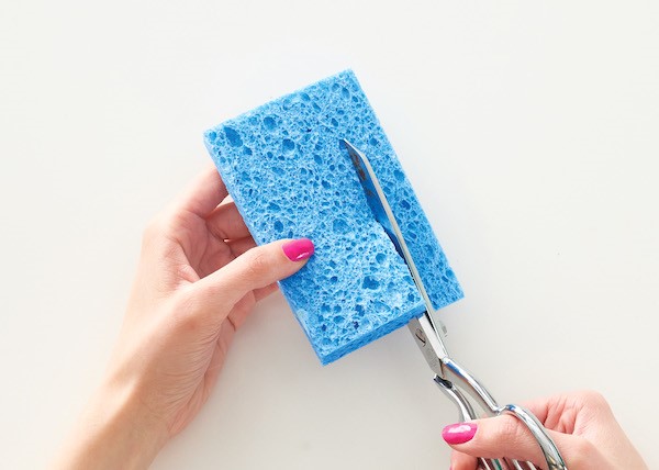 Cut 3 or 4 colorful new sponges into strips with a pair of scissors.