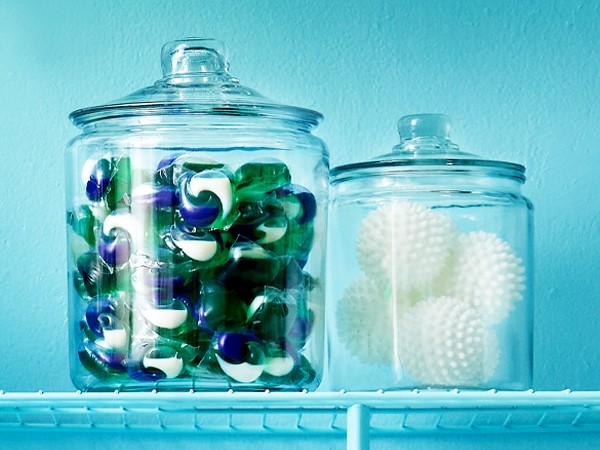 These practical jars are great for storing clothespins, dryer balls, and detergent pods. We also love the large clear view of what's inside.
