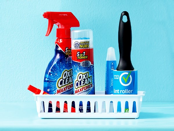 Use these durable small trays to corral multiple smaller cleaning items such as spray stain treatments and lint rollers.
