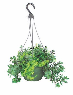 Choose from a large selection of planters and hanging baskets with bright flowers or handsome foliage plants like these easy-care succulents.