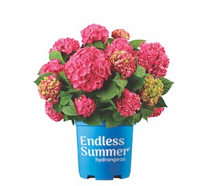 A compact grower well suited for containers, Summer Crush is a newer addition to the Endless Summer line and features raspberry red or neon purple flowers.