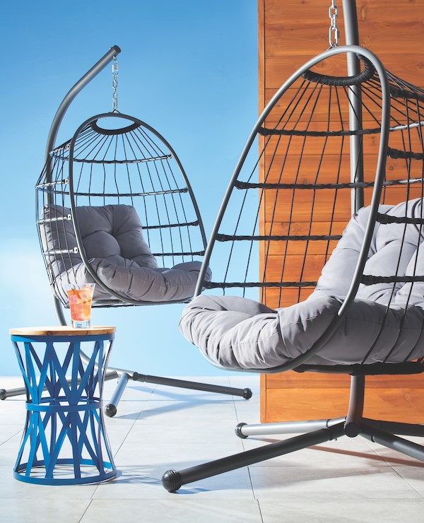 Not your average swings, these cocoon-like chairs are giant cozy cushions nestled into sturdy frameworks. Think of it like a retro-inspired hammock.