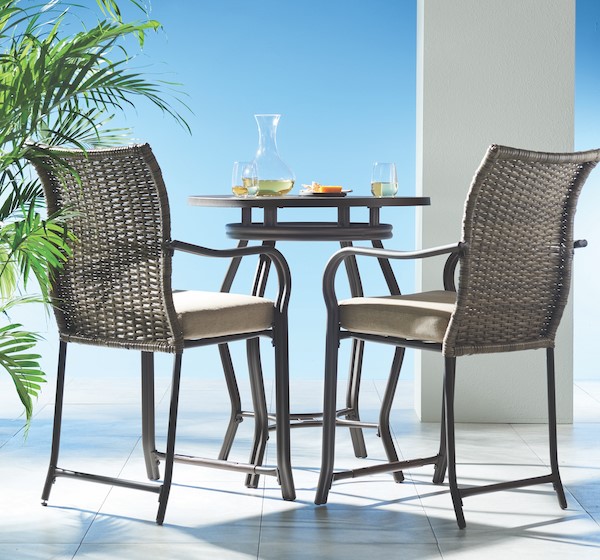 Sit down and relax, and do it in style. These bistro-style ergonomic chairs are part of a 3-piece bar set for your outdoor space.