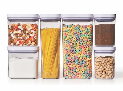 Not only do they help quickly organize the pantry, these OXO canisters also keep foods fresher than partially opened bags and boxes. Bonus points for having different, stackable sizes.