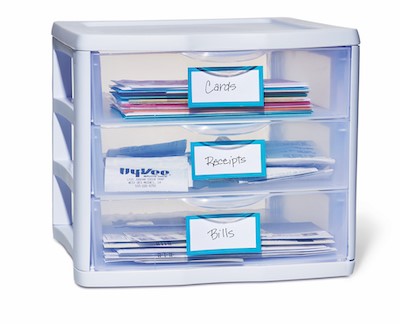 Papers, receipts, greeting cards, recipes, shopping lists are all perfect for storing in lightweight bins with drawers.