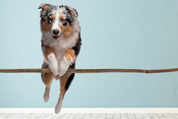 Prop a pole or broomstick across two piles of books. Use a treat to get your pup to jump. Start low and raise the pole gradually by adding books.