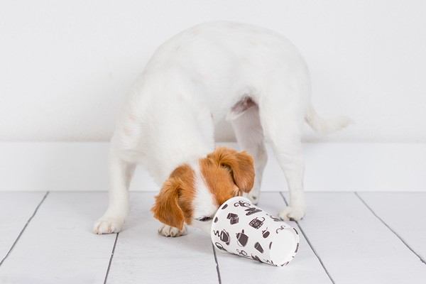 Roll a treat up in a yoga mat, soft blanket or rug. Let your pooch use her sniffer to nose the roll open and find her reward!