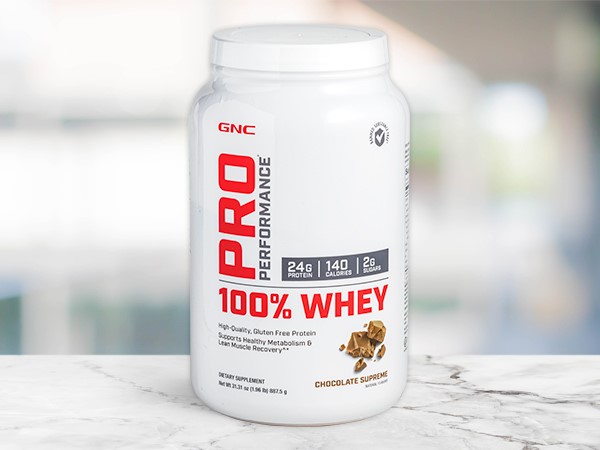 Interested in GNC Pro Performance 100% Whey prtoein? It contains 24 grams of whey protein with 9 essential amino acids to help muscles recover and grow! You can find it at your local Hy-Vee in the HealthMarket, or you can order on Aisles Online.