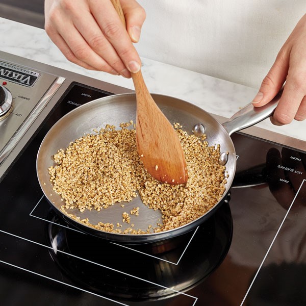 In a skillet, melt butter over medium heat. Add oats; cook and stir for 2 minutes or until toasted.
