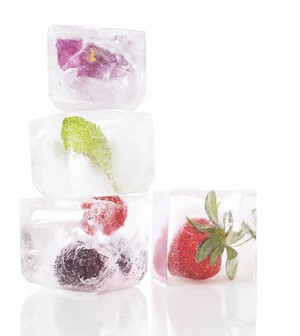 Get a little artsy and make beautiful ice cubes by freezing berry purees, fresh herbs, and slices of citrus. Place a small amount of berries and herbs in an ice cube tray, fill with water, and freeze. As the cubes melt in your water, they slowly release new flavors.